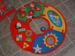 Bruin-blauw gestreept mutsje (12 mnd) met opdruk "Ukkie".